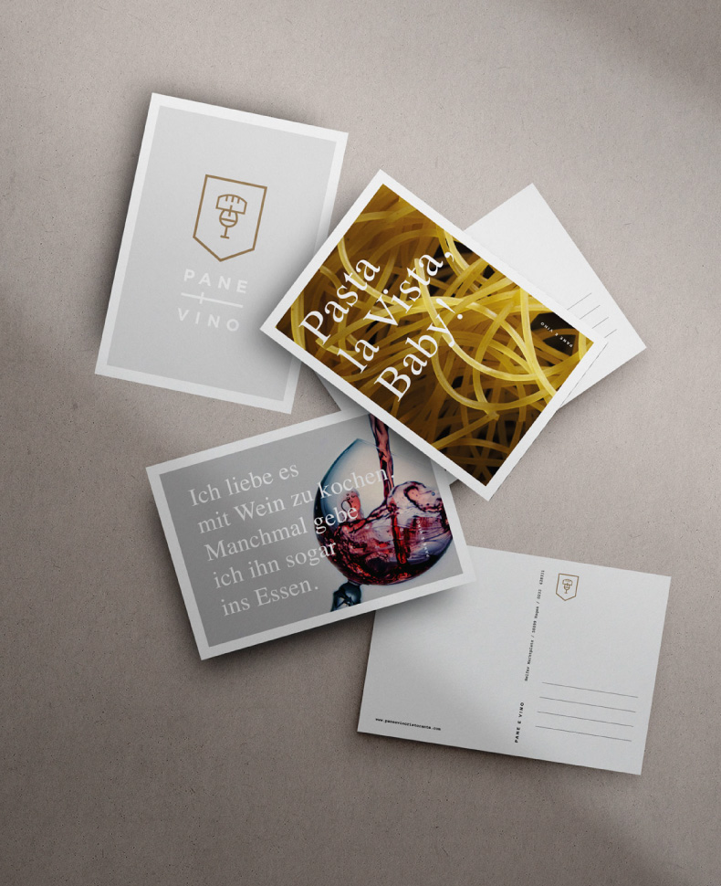 Dazu passte ein Auftritt mit Charakter: ein kraftvolles Schriftlogo in Versalien, plakativ und mit starker Wiedererkennung, ergänzt durch ein Signet aus Brotlaib, Weinglas und dem verbindenden Pluszeichen.