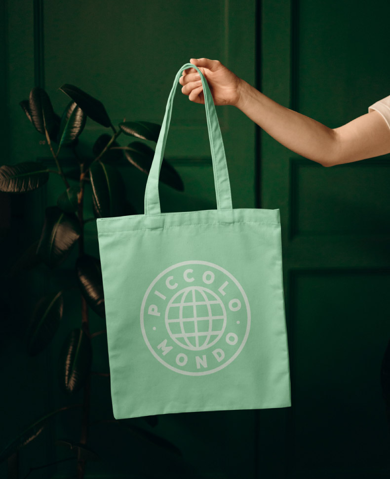 Wir haben für das Geschäft ein Corporate Design entwickelt, das Wärme und Natürlichkeit transportiert: eine Wort-Bildmarke mit angedeuteter Weltkugel, leicht angeraut, kindlich, aber ohne Kitsch.
