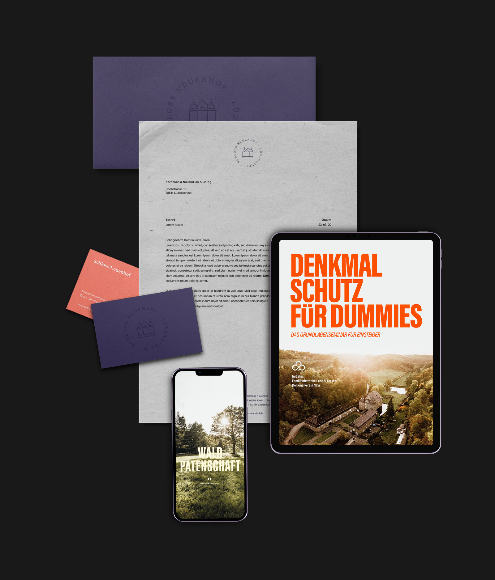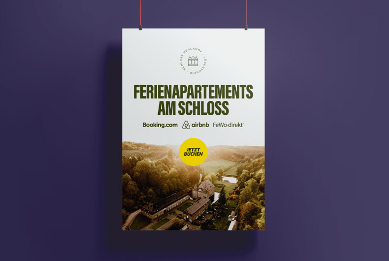 Seit vielen Jahren begleiten wir das Anwesen gestalterisch. Die Bildmarke zeigt die Silhouette des Schlosses – nachgezeichnet, reduziert, zeitlos.