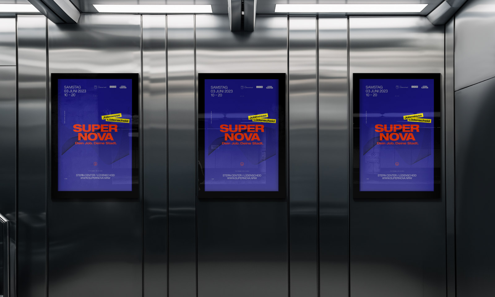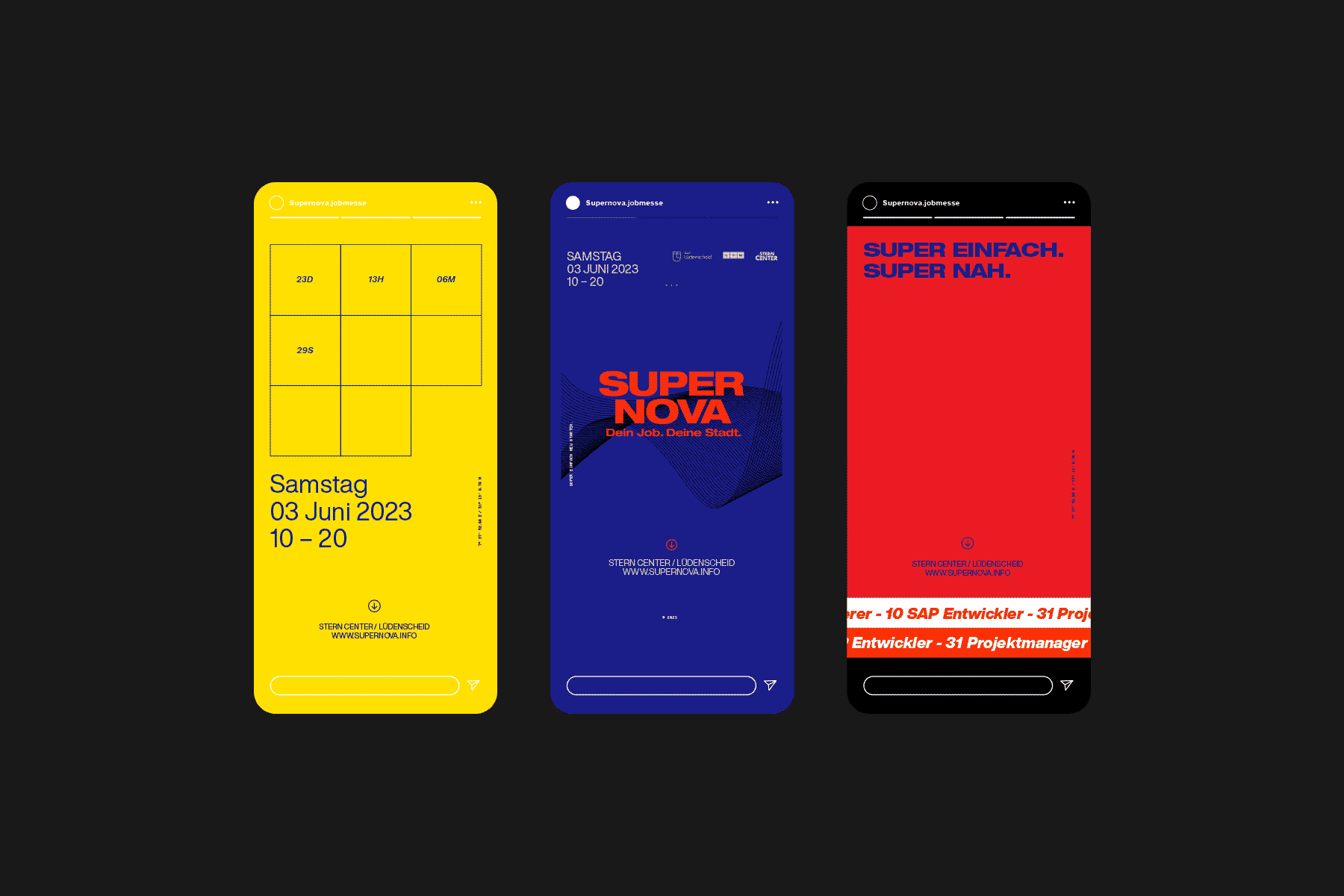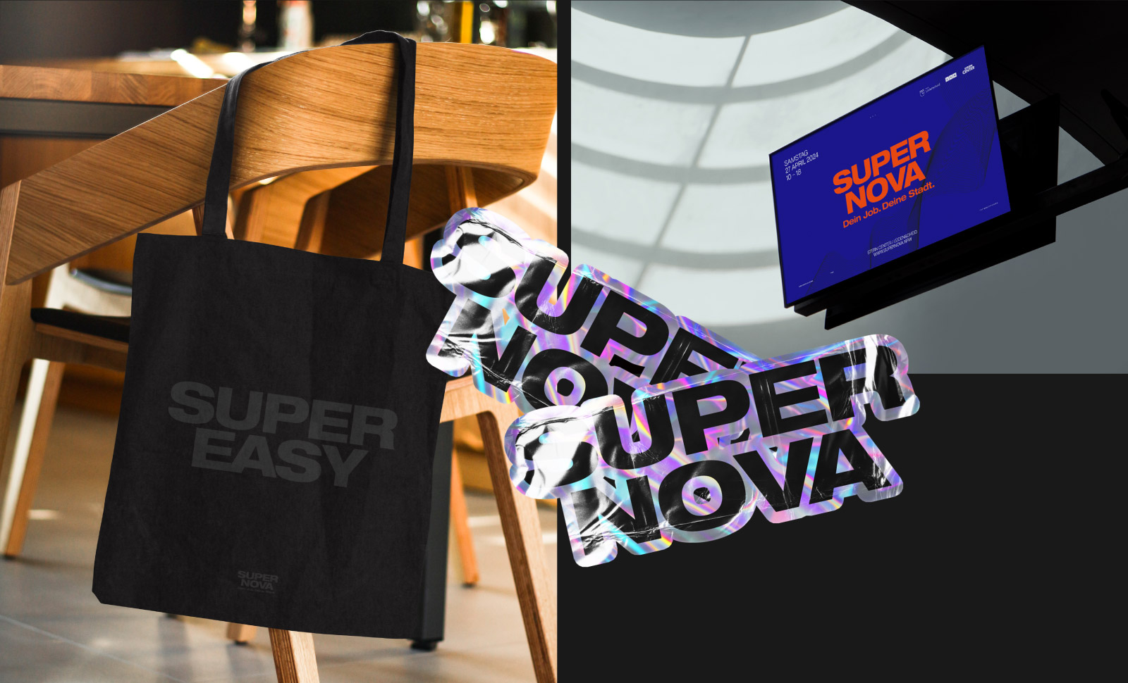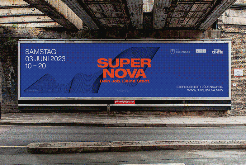 „Supernova“ bezeichnet eine Sternenexplosion – Ende und Neuanfang zugleich. Dieses Prinzip prägt das Design: kräftige Farben, klare Typografie und plakative Flächen, die Aufmerksamkeit schaffen.